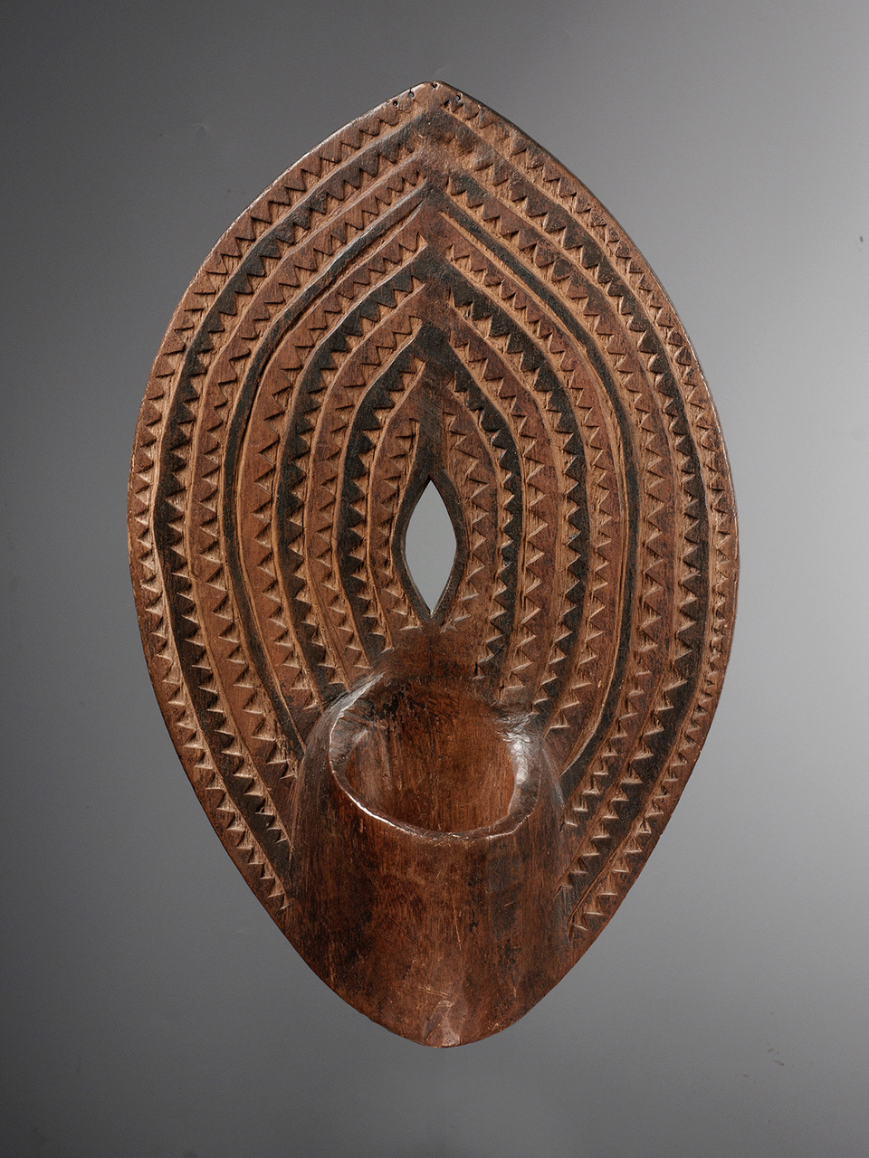 These shields were used during the initiations ceremonies of boys passing into the adult age and was worn on the upper part of the arm.